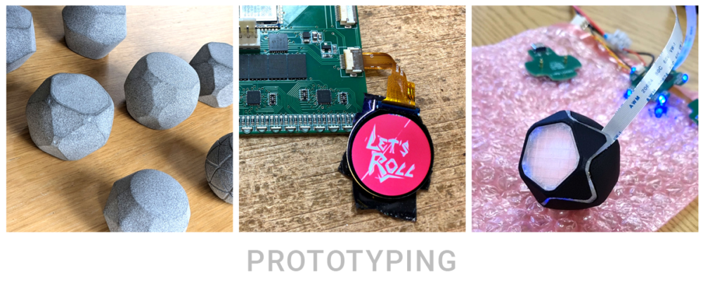 We produced dozens of 3D-printed mockups, systematically varying shape, corner radii, weight and distribution. The goal: a product that rolls and feels like a normal die, always landing screen side up, while still housing electronics and lighting.